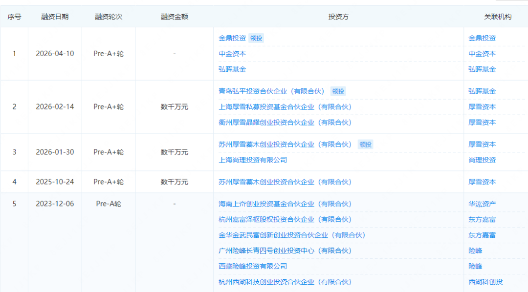 2025年10月,蓝色向量完成了厚雪资本独家投资的数千万元的Pre-A+轮融资。2026年1月,蓝色向量完成Pre-A++轮融资,由老股东厚雪资本领投,新能源产投尚理投资跟投,融资总额达数千万元。